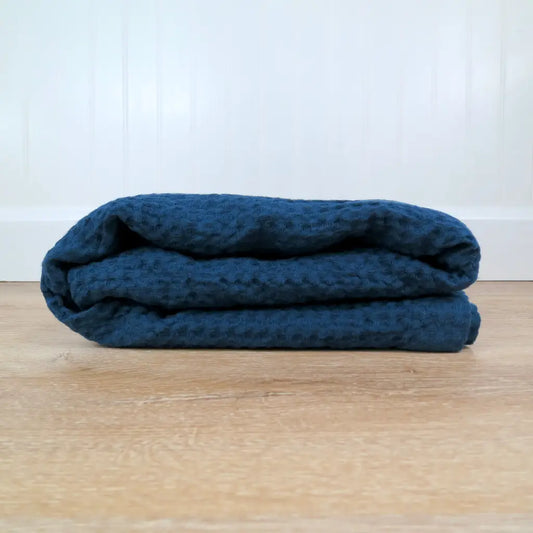 Navy Blue Waffle Weave Throw Blanket