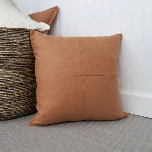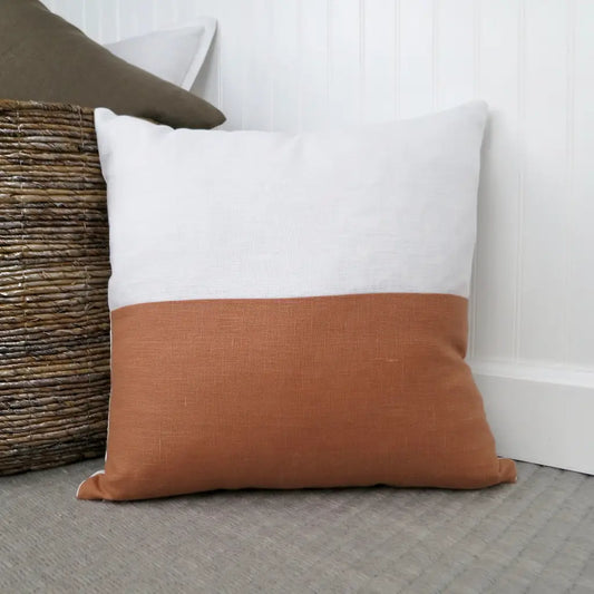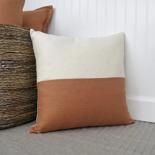 Color Block Linen Pillow Cover | Adobe and White Linen