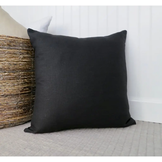 Dark Gray Linen Pillow Cover with Modern Block Pattern