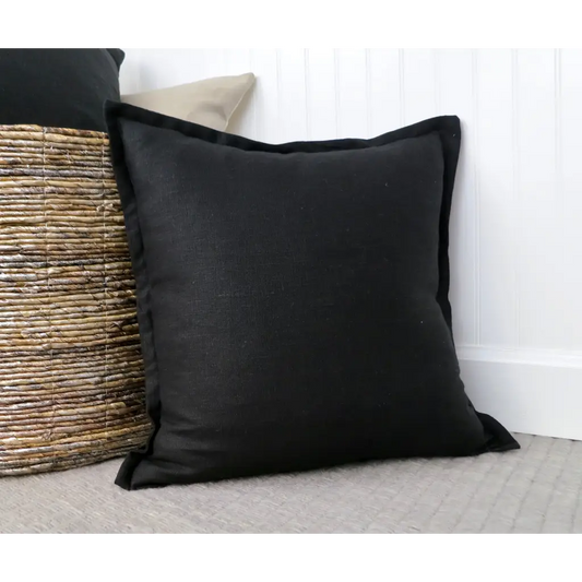 Farmhouse Brown Linen Pillow Cover with Flange Edge