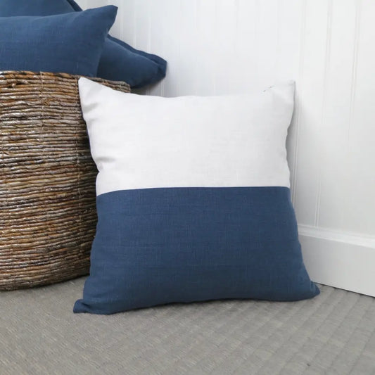 Color Block Linen Pillow Cover | Navy Blue and White Linen
