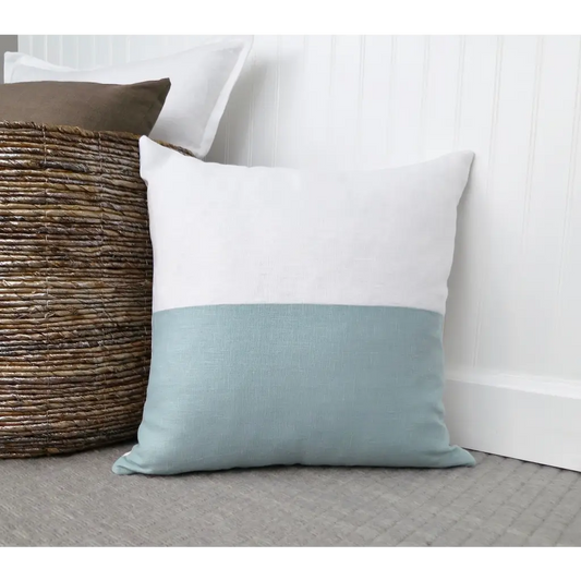 Color Block Linen Pillow Cover | Spa Blue and White Linen