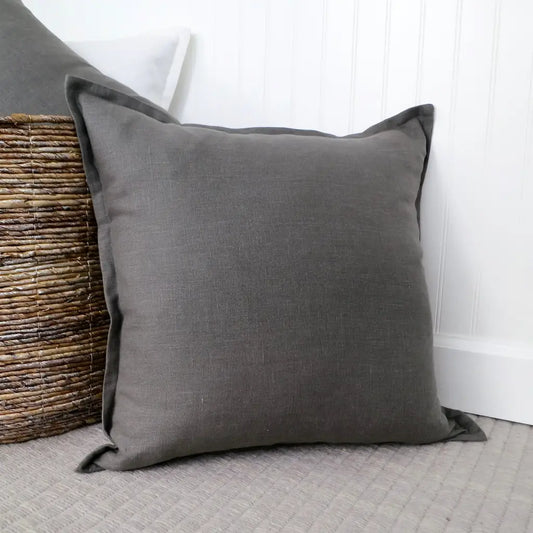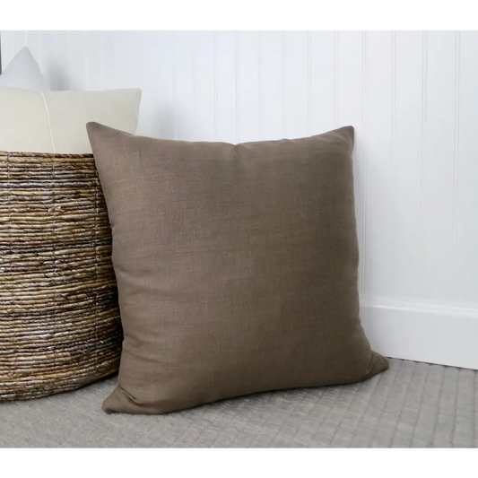 Farmhouse Brown Linen Pillow Cover with Flange Edge