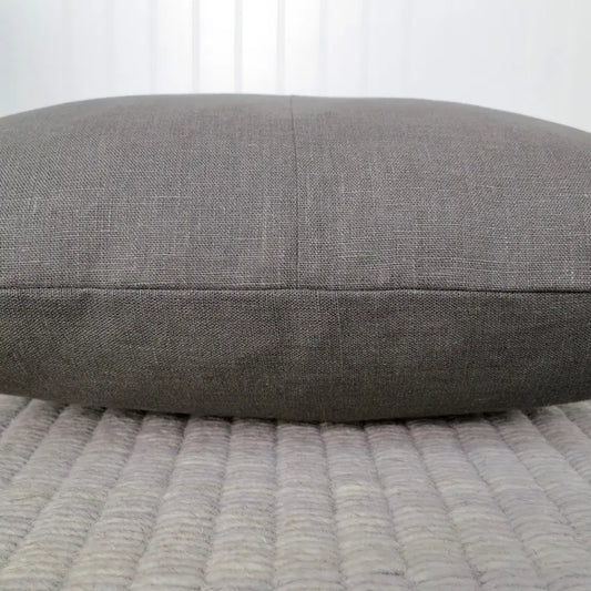 Dark Gray Linen Pillow Cover with Modern Block Pattern