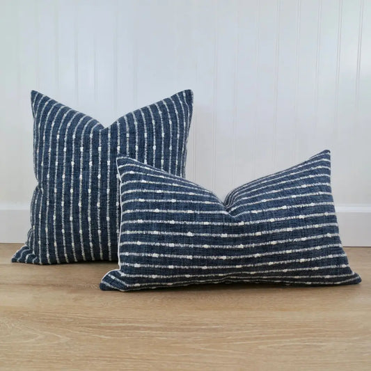 Navy Blue Linen Pillow Cover with Modern Block Pattern