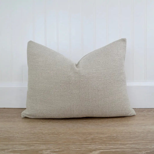 Heathered Natural Linen Pillow Cover with Modern Block Pattern