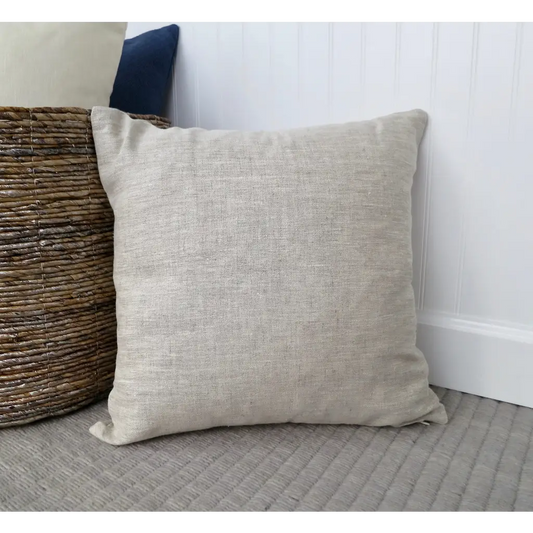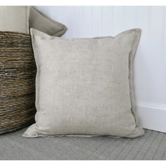 Heathered Natural Linen Pillow Cover with Flange Edge